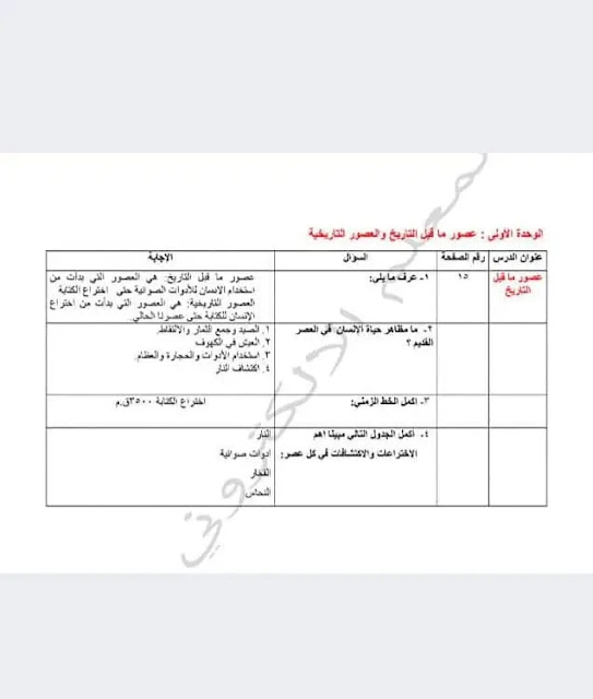 شرح الوحدة الأولى في مادة التاريخ للصف السادس الفصل الاول +حل امتحان الوحدة الاولى